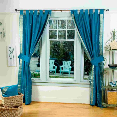 Indo Turquoise Tab Top Sari Sheer Curtain (43 in. x 84 in.) with matching tieback Features